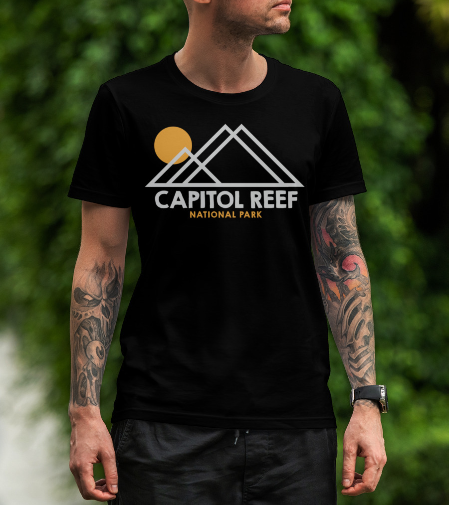 Capitol Reef National Park Utah Outline Sun And Mountains T-Shirt