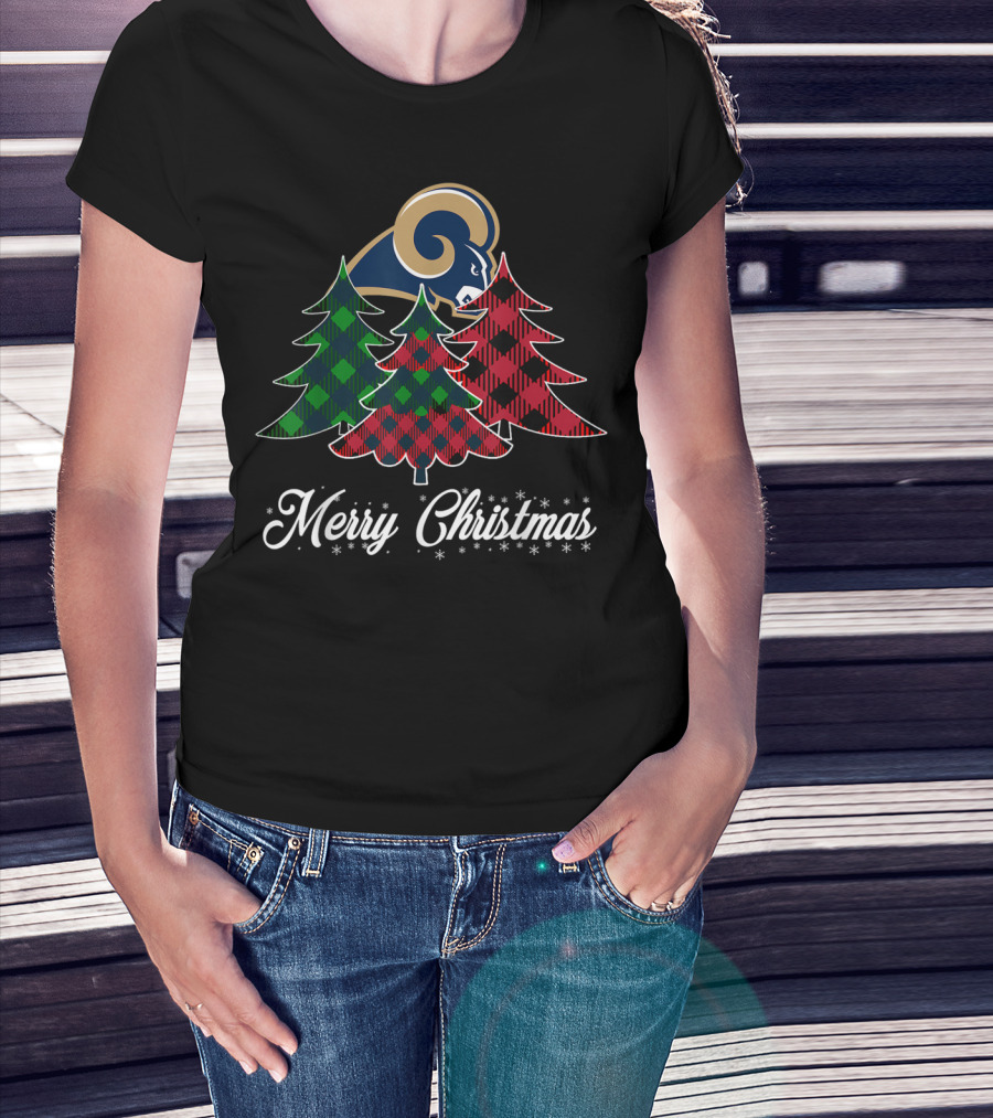 Merry Christmas Los Angeles Rams Plaid Trees Football Team T-Shirt