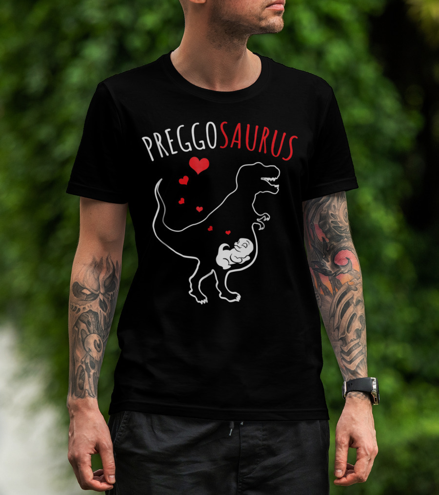 The Preggosaurus Funny Pregnant Dinosaur Cute Halloween Mom 76 T-shirt is designed for everyday wear and a consistent fit. Fabric is pre-shrunk ring-spun cotton with durable stitching. See the size chart below for exact measurements.