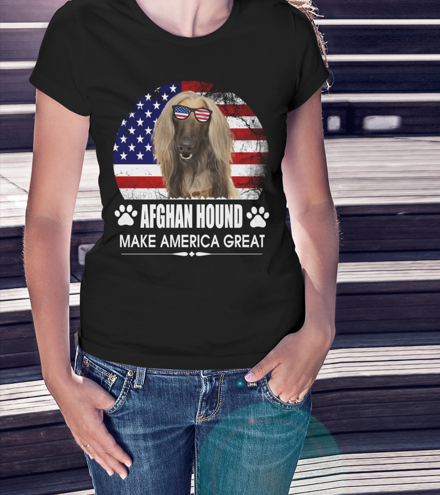 Afghan Hound Make America Great With Dog And Flag Paw Prints T-Shirt