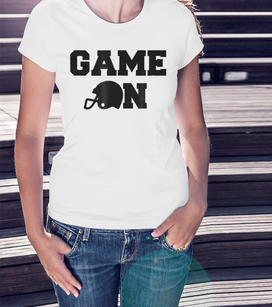 The Game On Football Helmet Cute Football T-shirt is designed for everyday wear and a consistent fit. Fabric is pre-shrunk ring-spun cotton with durable stitching. See the size chart below for exact measurements.