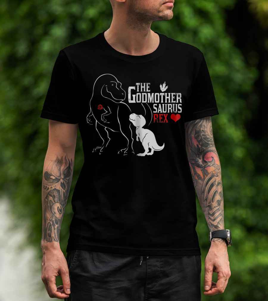 The Godmother Saurus Rex Mama Saurus Dinosaur Heart T-Shirt