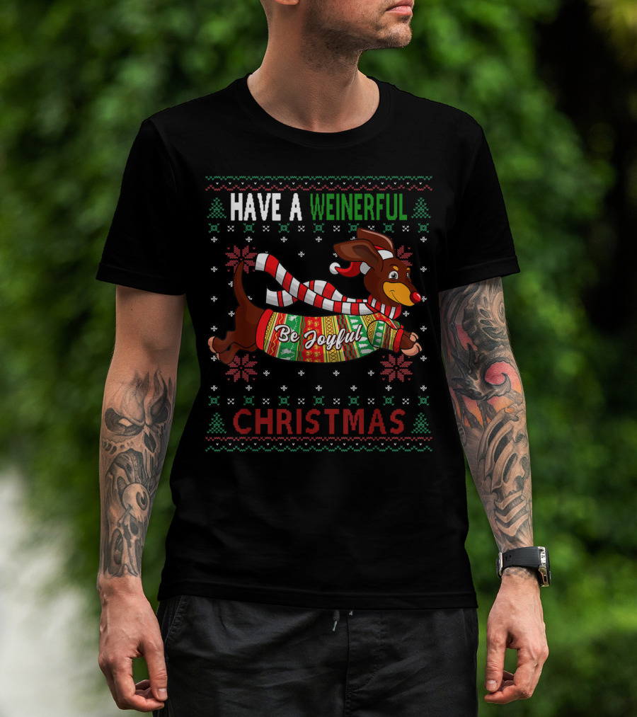 Have A Weinerful Be Joyful Christmas Dachshund Ugly Doxie Lover T-Shirt