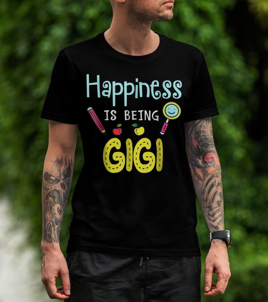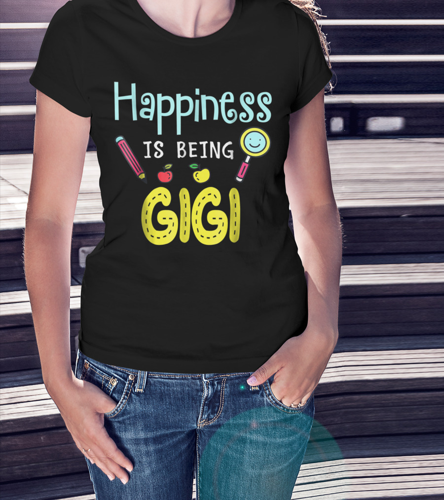 The Happiness Is Being Gigi Mom Mother Apple Pencil Smiley Face T-shirt is designed for everyday wear and a consistent fit. Fabric is pre-shrunk ring-spun cotton with durable stitching. See the size chart below for exact measurements.