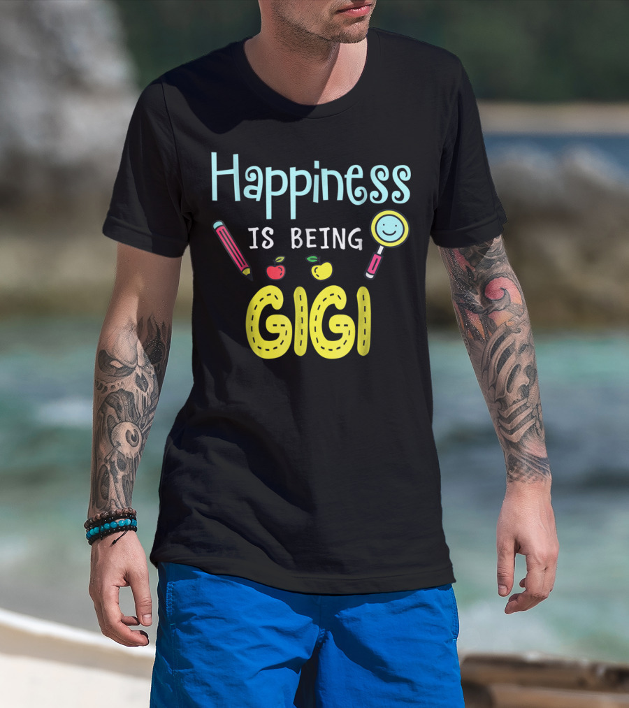Happiness Is Being Gigi Mom Mother Apple Pencil Smiley Face T-Shirt