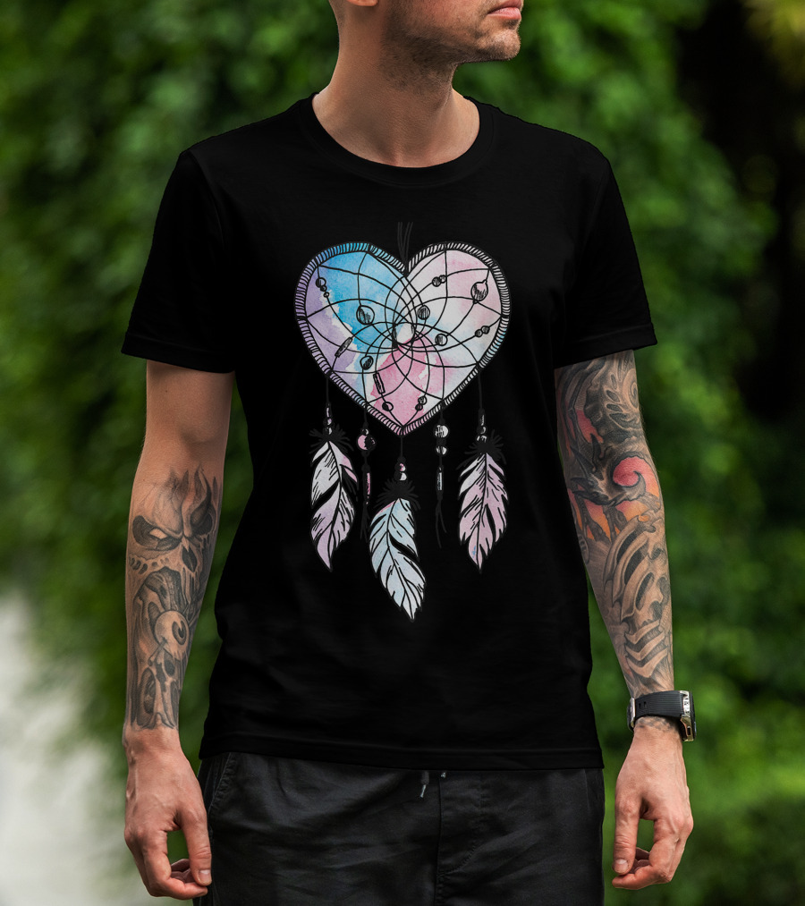 The Dream Catcher Native American Heart Boho T-shirt is designed for everyday wear and a consistent fit. Fabric is pre-shrunk ring-spun cotton with durable stitching. See the size chart below for exact measurements.