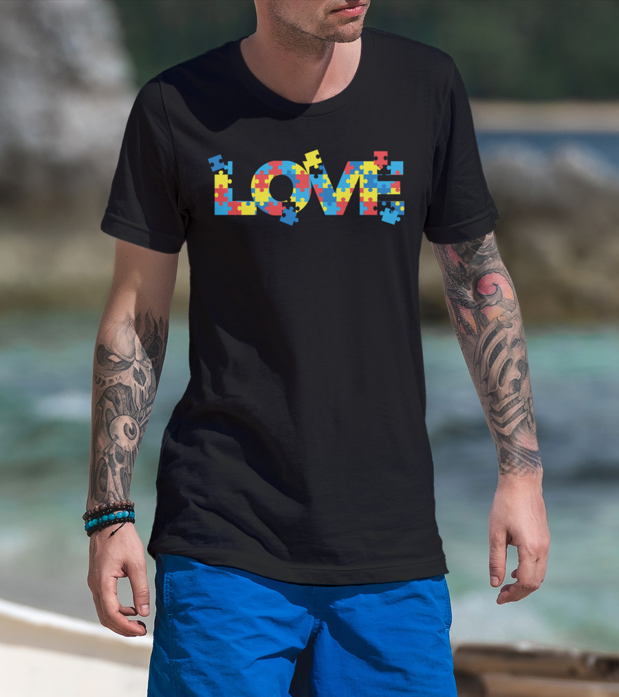 The LOVE Autism Puzzle Piece T-shirt is designed for everyday wear and a consistent fit. Fabric is pre-shrunk ring-spun cotton with durable stitching. See the size chart below for exact measurements.