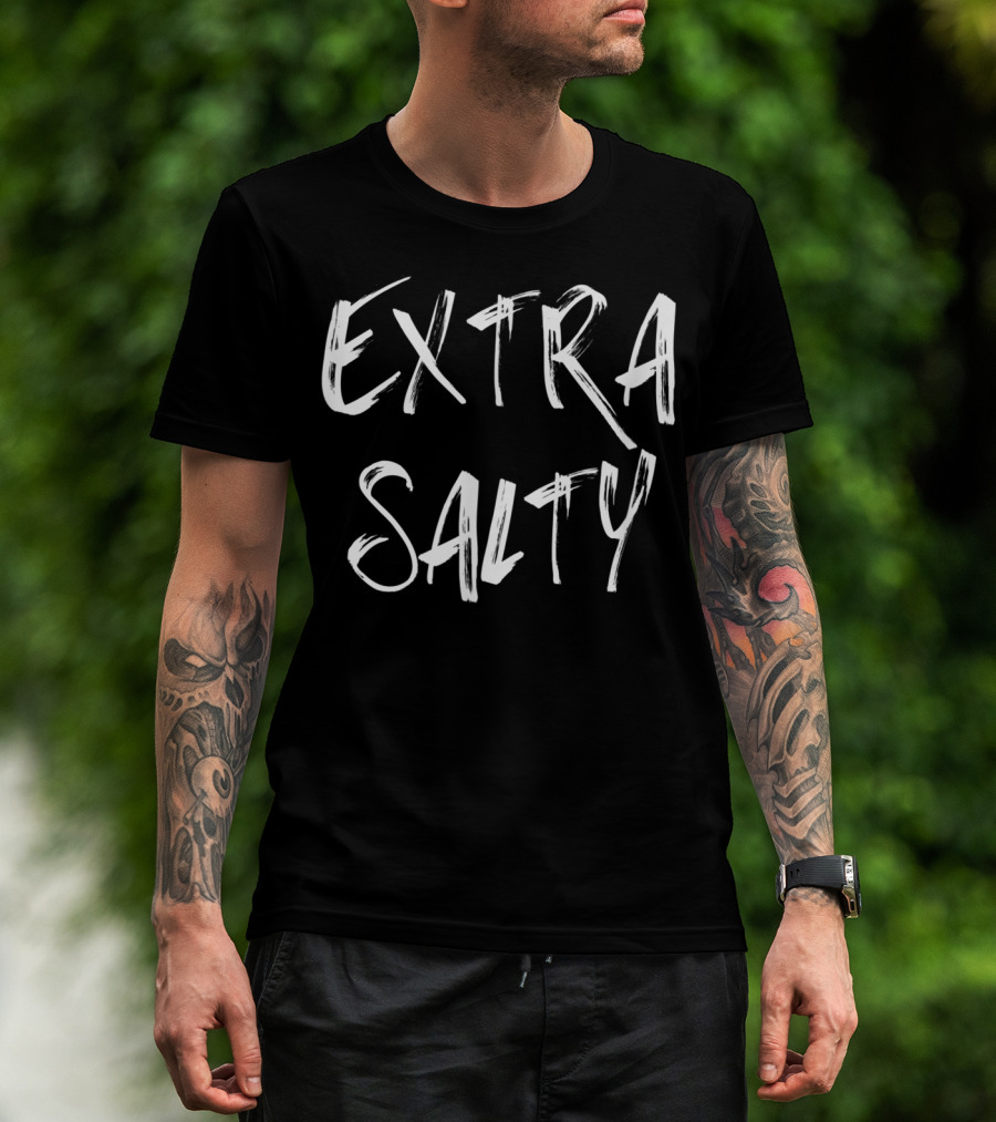 The EXTRA SALTY T-shirt is designed for everyday wear and a consistent fit. Fabric is pre-shrunk ring-spun cotton with durable stitching. See the size chart below for exact measurements.