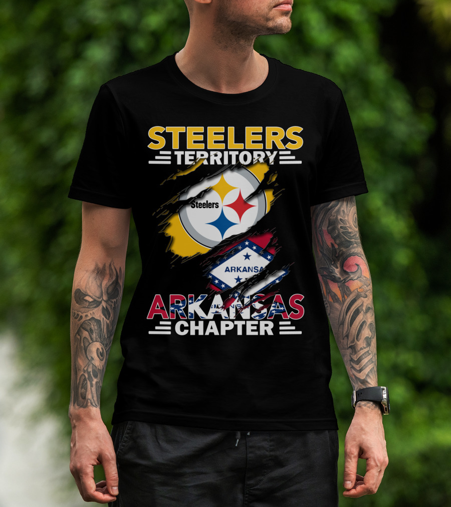 Steelers Territory Arkansas Chapter Steelers Logo Arkansas Flag T-Shirt