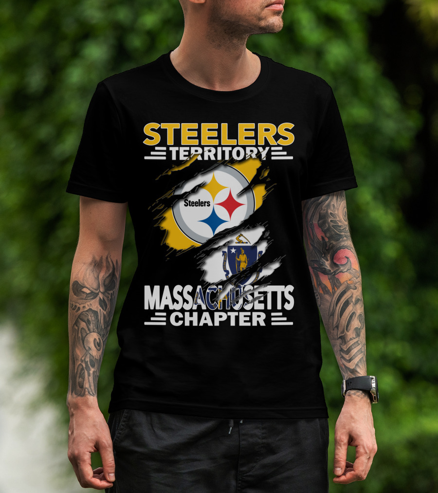 Steelers Territory Massachusetts Chapter Logo With Massachusetts Flag And Steelers Emblem T-Shirt