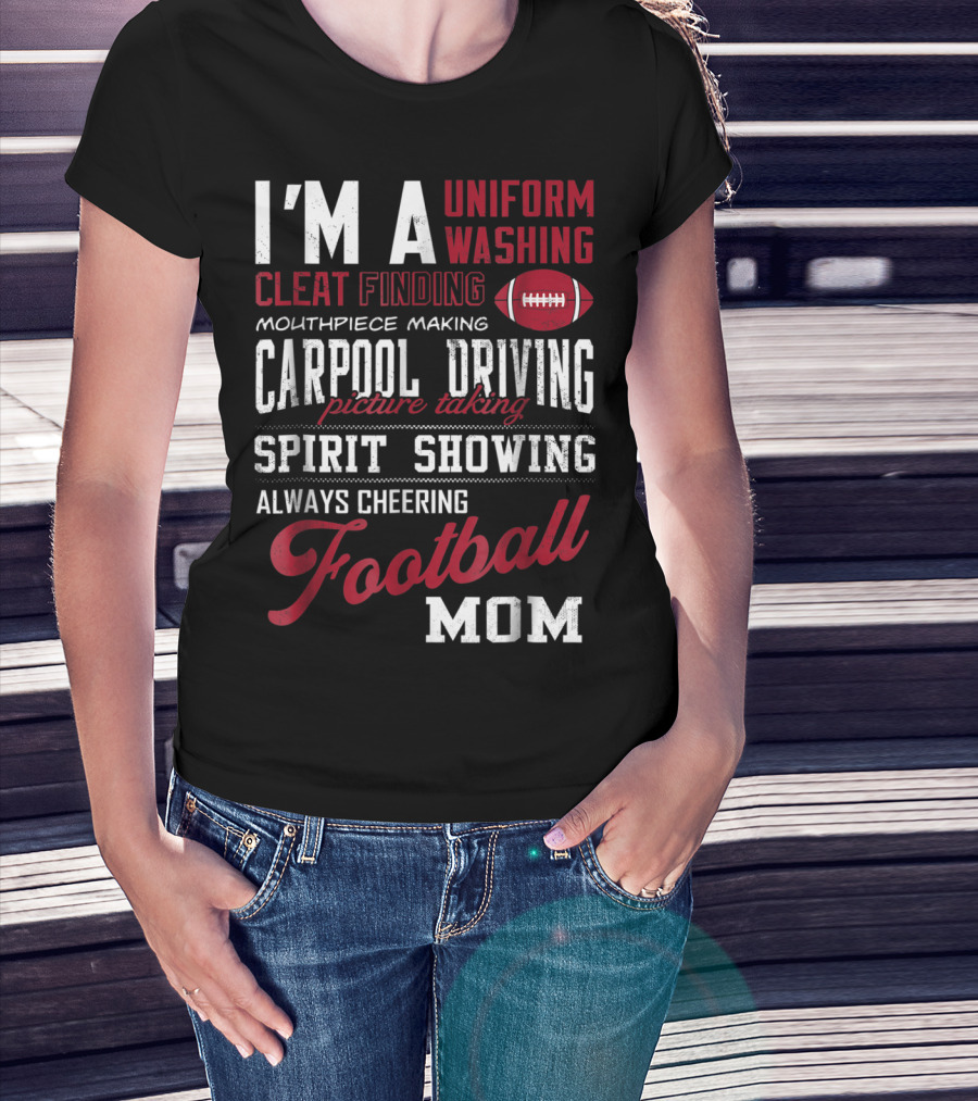 I'm A Uniform Washing Cleat Finding Mouthpiece Making Carpool Driving Picture Taking Spirit Showing Always Cheering Football Mom T-Shirt
