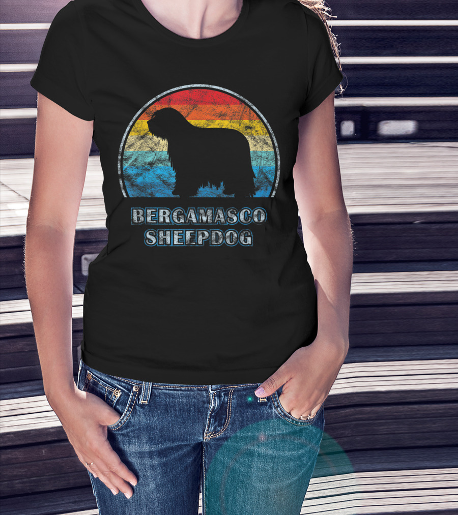 Bergamasco Sheepdog Retro Silhouette Vintage Stripes T-Shirt