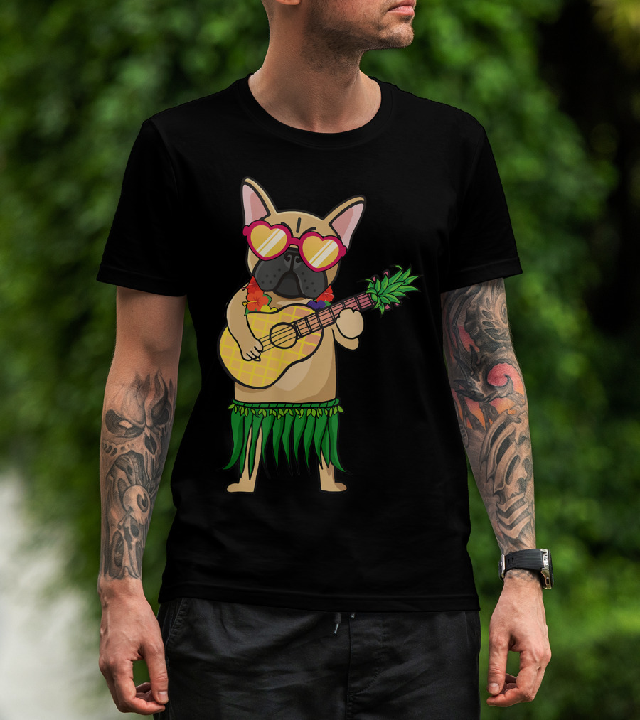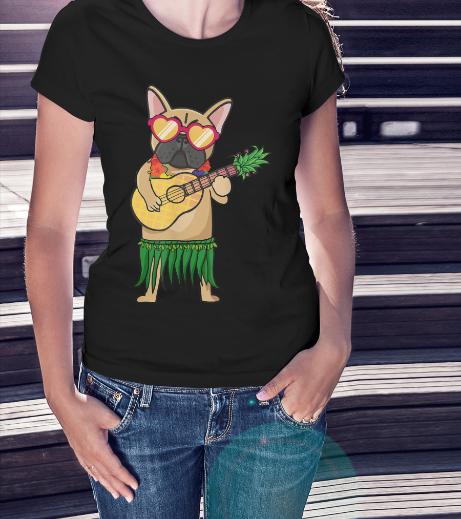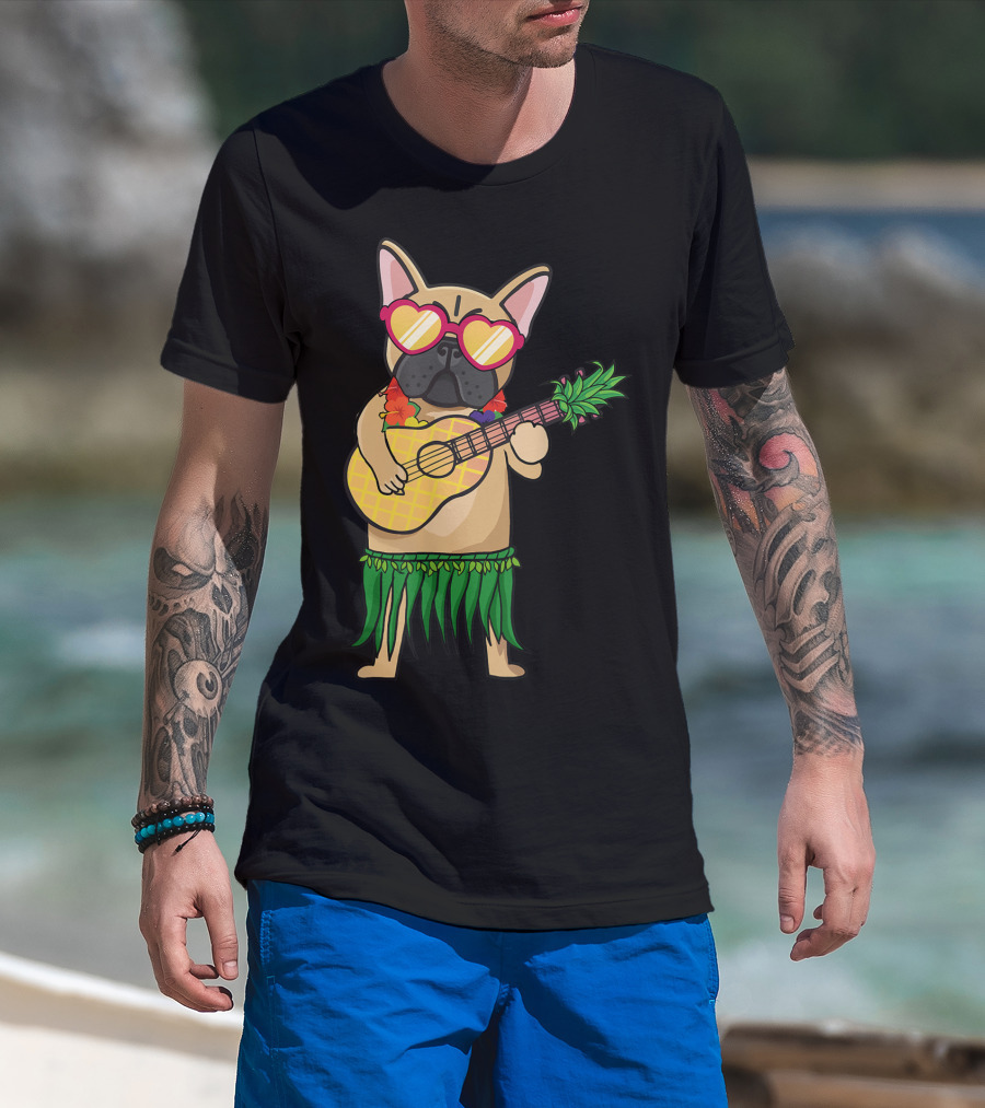French Bulldog Hawaiian Ukulele Summer Costume T-Shirt