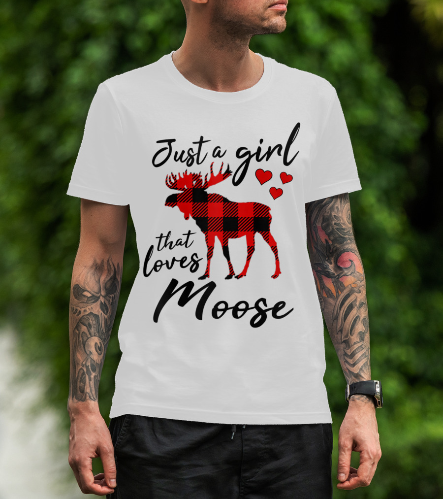 Just A Girl That Loves Moose Buffalo Plaid Hearts T-Shirt