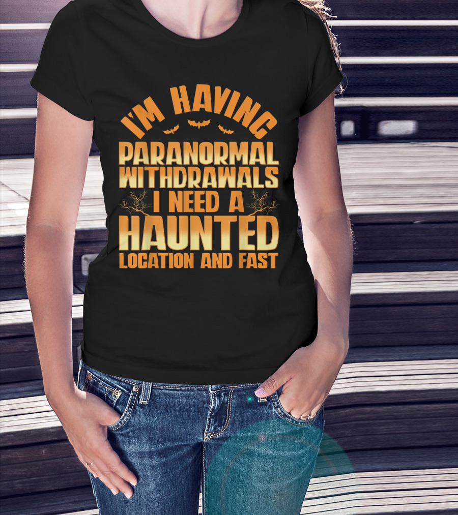 The I'm Having Paranormal Withdrawals I Need a Haunted Location and Fast T-shirt is designed for everyday wear and a consistent fit. Fabric is pre-shrunk ring-spun cotton with durable stitching. See the size chart below for exact measurements.