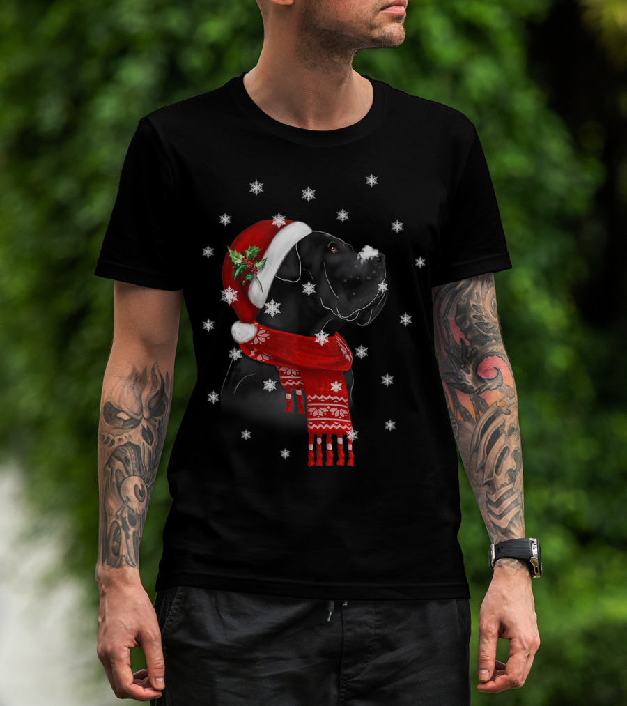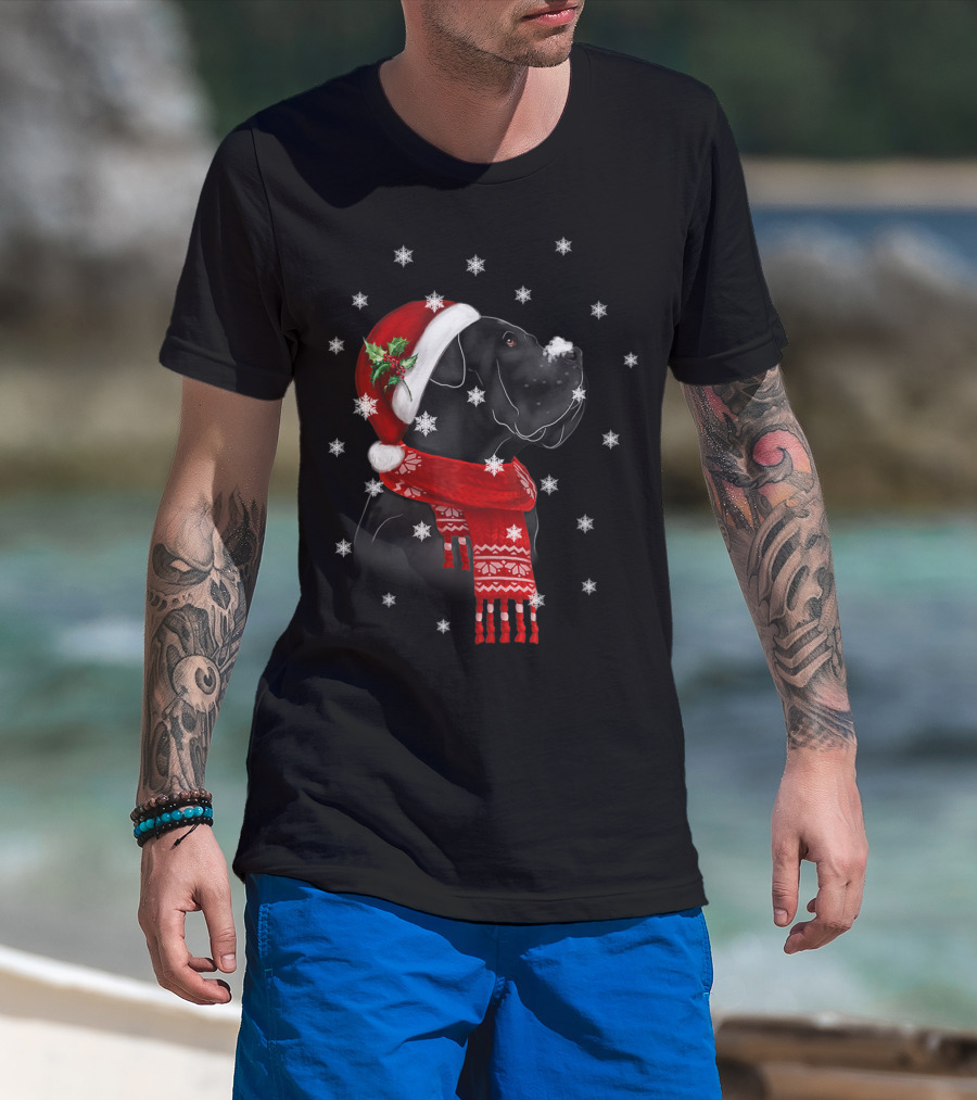 Cane Corso Christmas Tree Xmas For Cane Corso With Santa Hat And Snowflakes T-Shirt