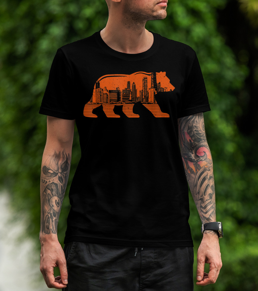 The Chicago Football Bear Skyline Orange T-shirt is designed for everyday wear and a consistent fit. Fabric is pre-shrunk ring-spun cotton with durable stitching. See the size chart below for exact measurements.