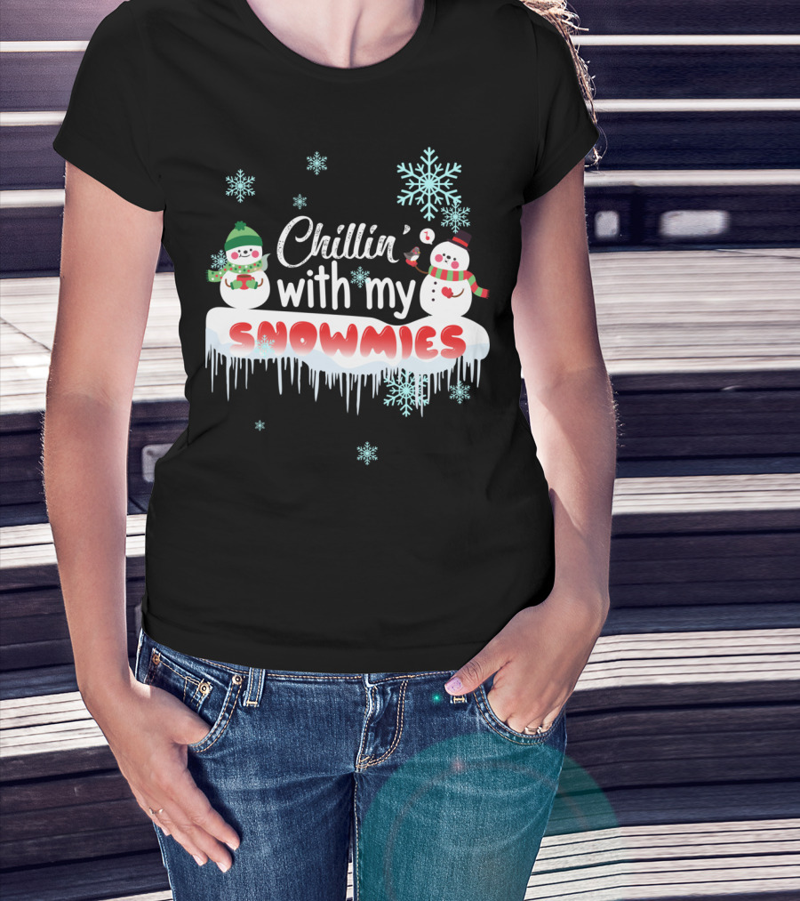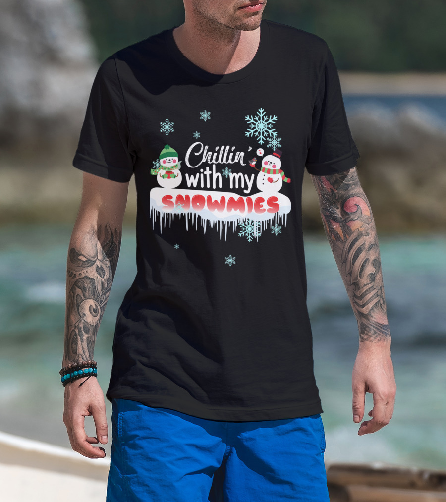 Chillin' With My Snowmies Cute Snowman Smoking Pipe And Snowflakes T-Shirt