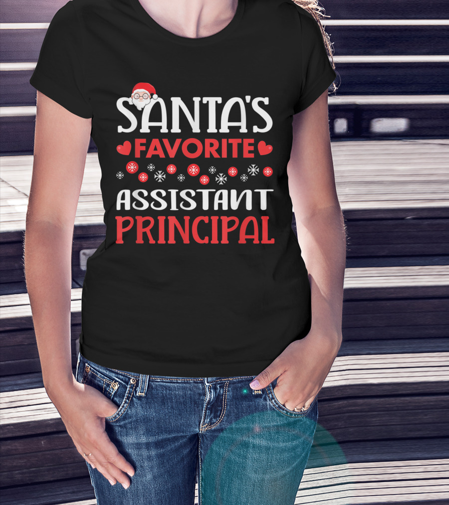 Santa's Favorite Assistant Principal Christmas Snowflake Hearts T-Shirt