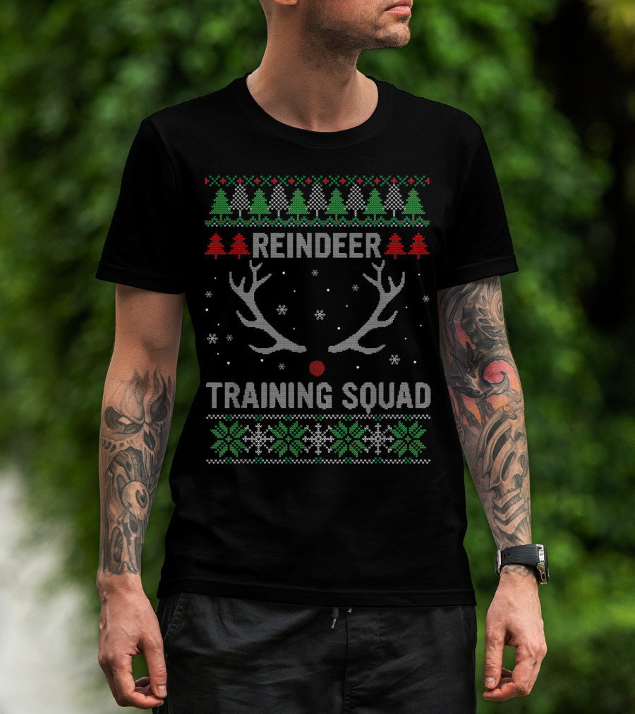 Christmas Reindeer Training Squad Ugly Sweater Antlers Snowflakes Trees T-Shirt