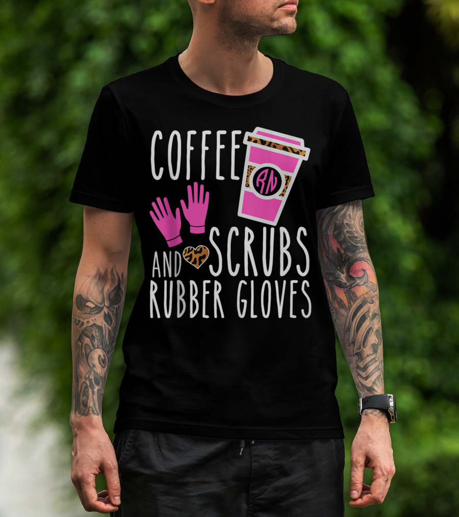 Coffee Scrubs And Rubber Gloves RN Pink Leopard Heart Nursing T-Shirt