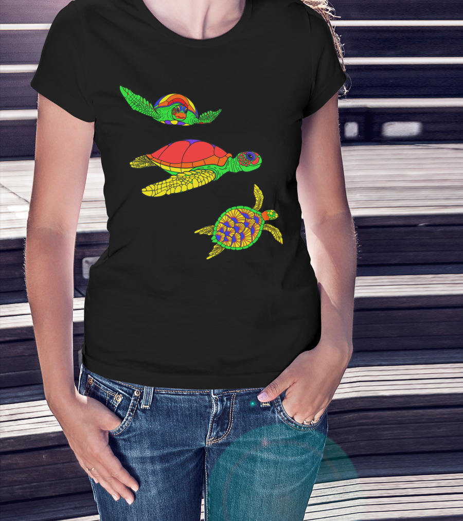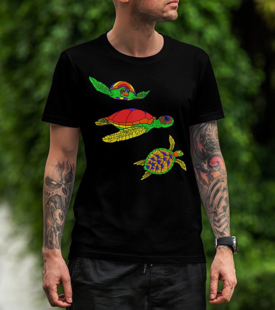 Colorful Swimming Sea Turtle Shell Artful Display T-Shirt