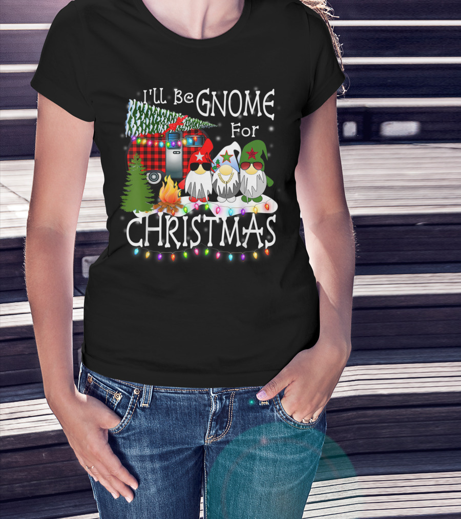 I'll Be Gnome For Christmas Camping With Christmas Lights And Gnomes T-Shirt