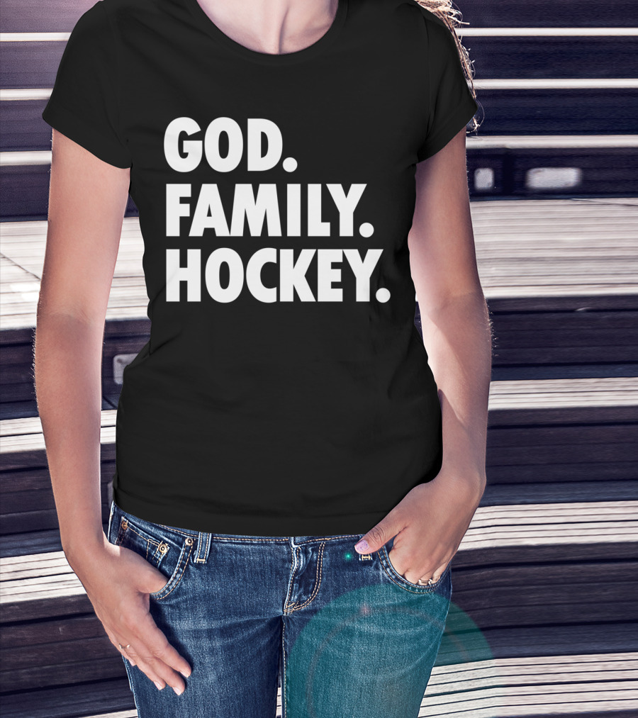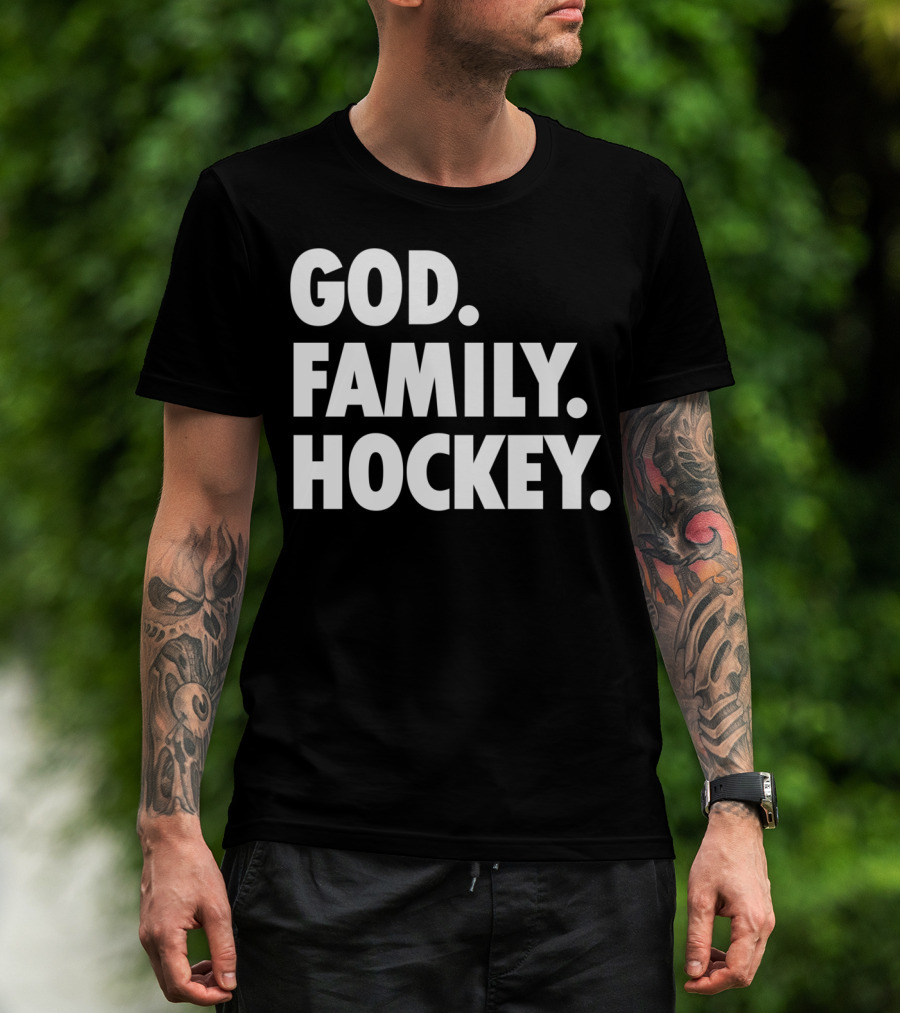 The God Family Hockey T-shirt is designed for everyday wear and a consistent fit. Fabric is pre-shrunk ring-spun cotton with durable stitching. See the size chart below for exact measurements.