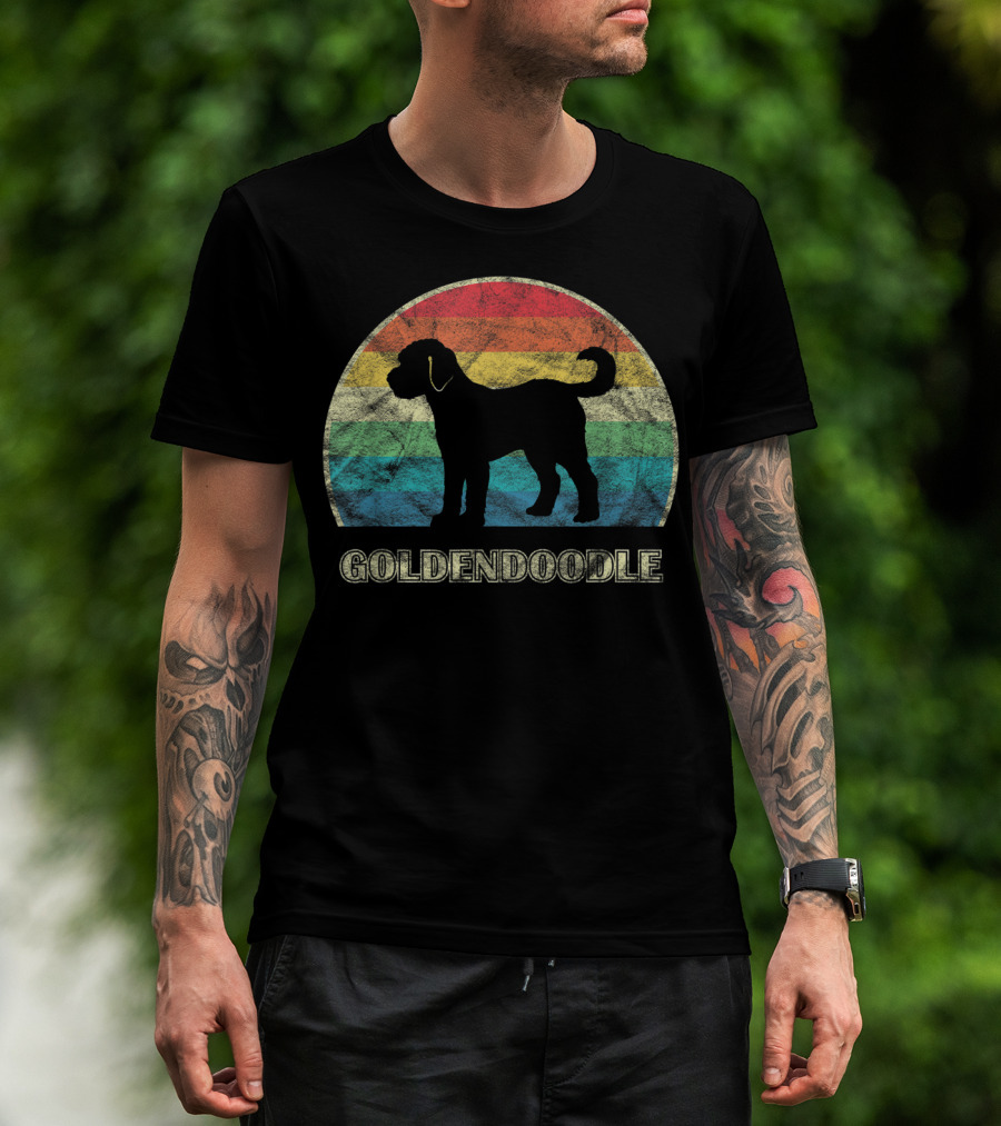 Goldendoodle Silhouette Retro Rainbow T-Shirt