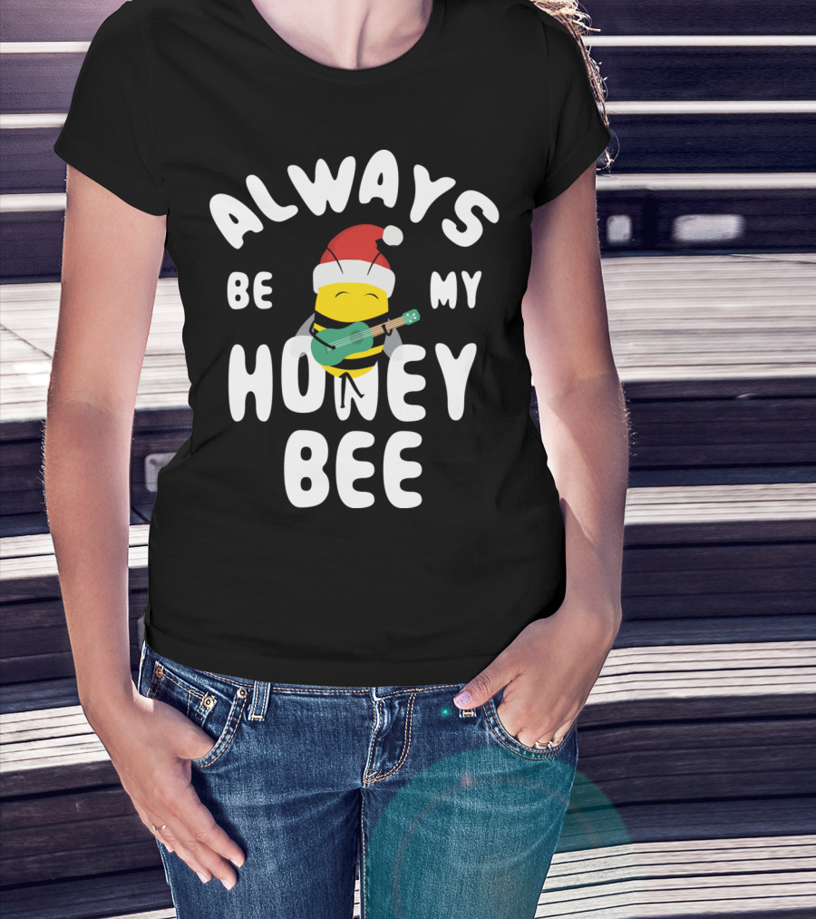 Always Be My Honey Bee Christmas Bee With Santa Hat And Guitar T-Shirt