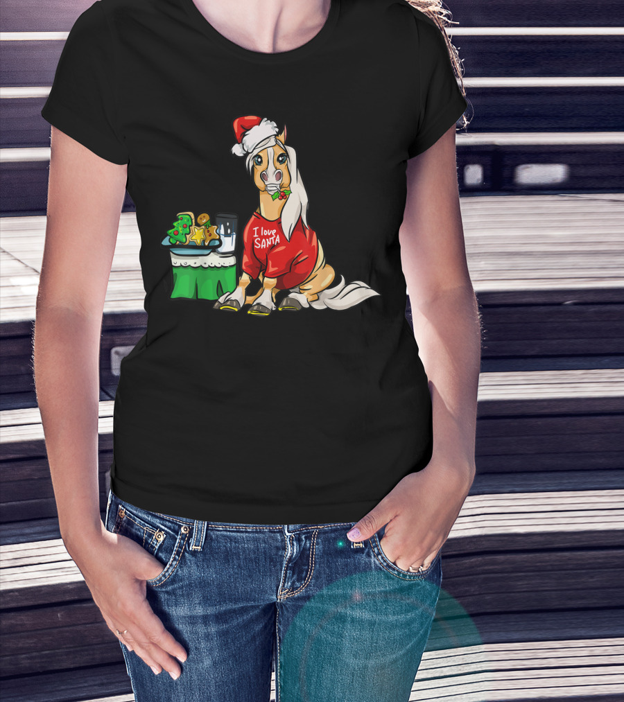 Haflinger Horse I Love Santa Christmas Cookies And Milk Holiday T-Shirt