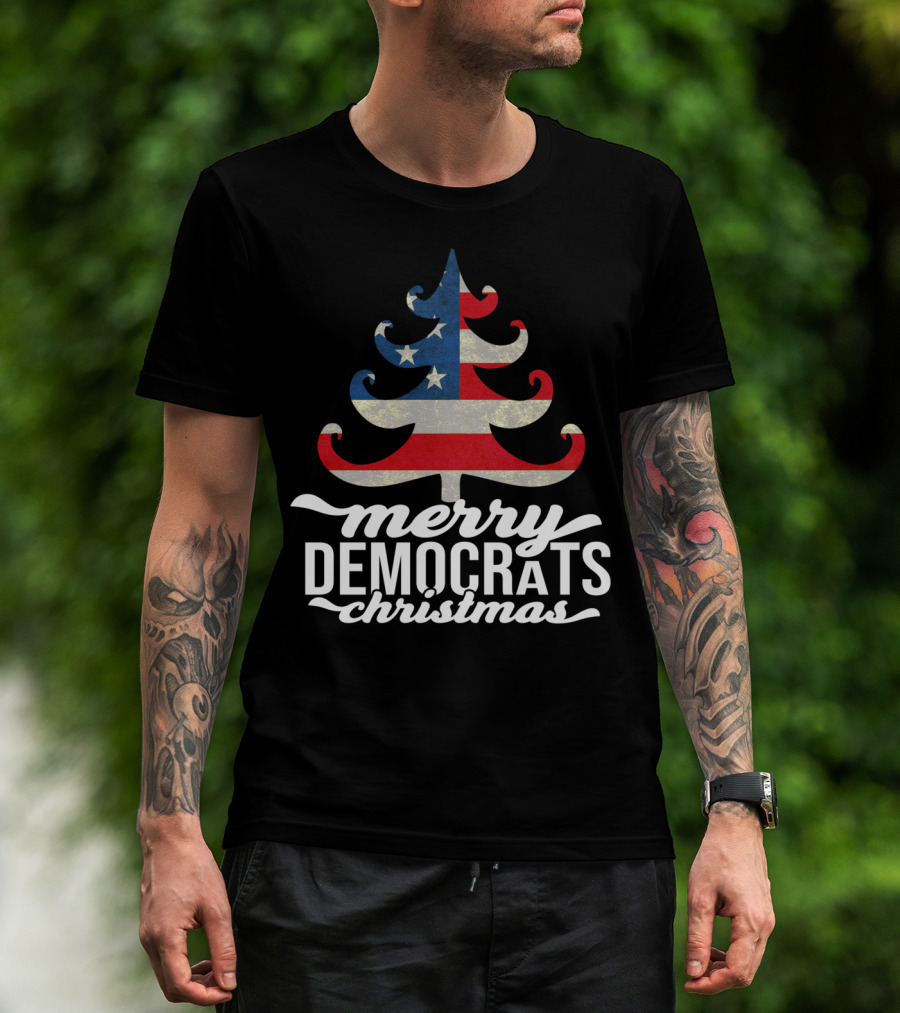 Merry Christmas Democrats Patriotic Tree USA Flag Stars T-Shirt