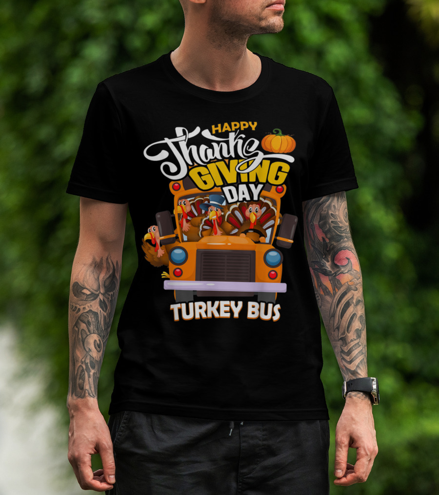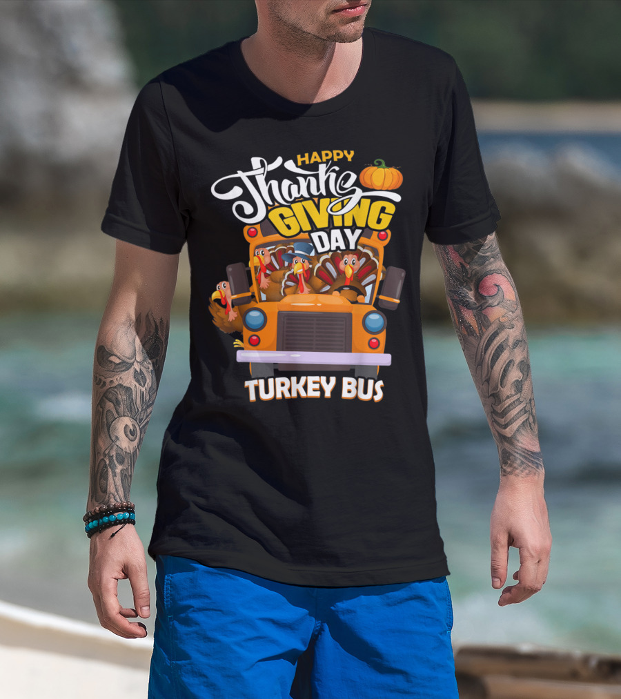 Happy Thanksgiving Day Turkey Bus T-Shirt