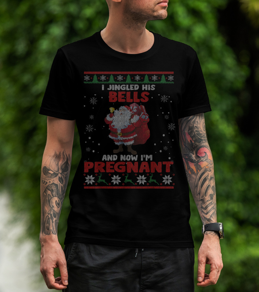 I Jingled His Bells Christmas Santa Pregnant Ugly T-Shirt