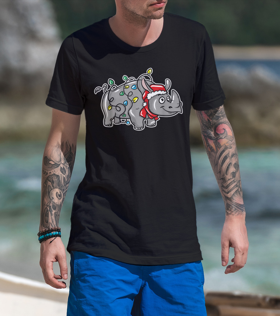 Santa Claus Rhino Christmas Lights Funny Holiday Lover T-Shirt