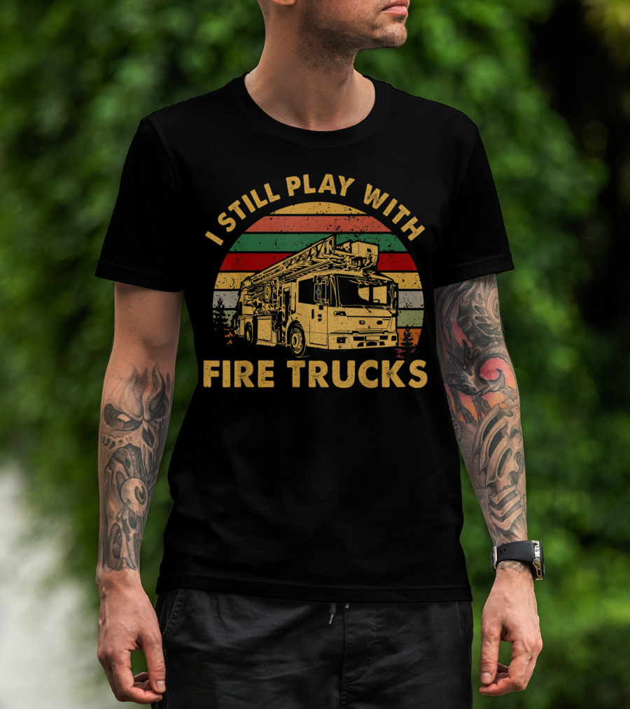 The I Still Play With Fire Trucks Retro T-shirt is designed for everyday wear and a consistent fit. Fabric is pre-shrunk ring-spun cotton with durable stitching. See the size chart below for exact measurements.