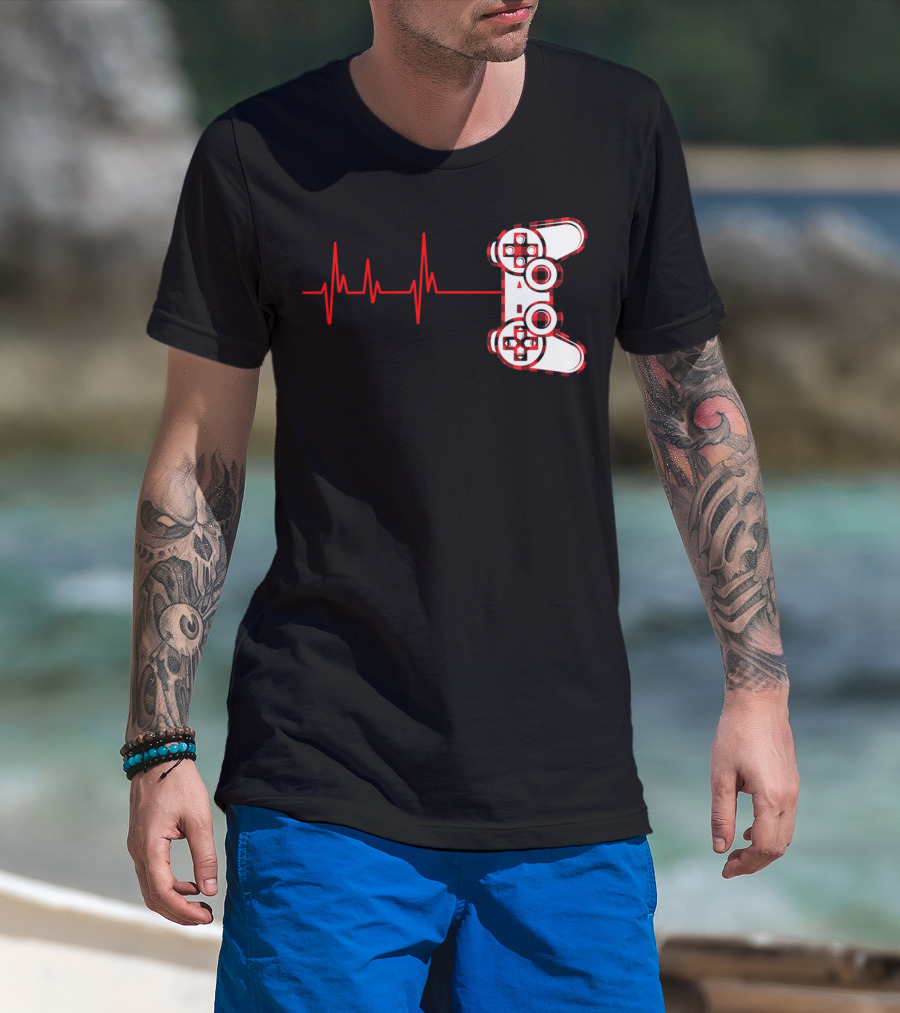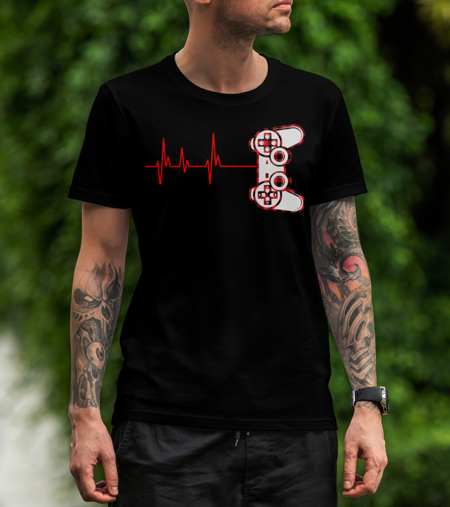 Heartbeat Red Buffalo Plaid Gamer Video Game Controller T-Shirt