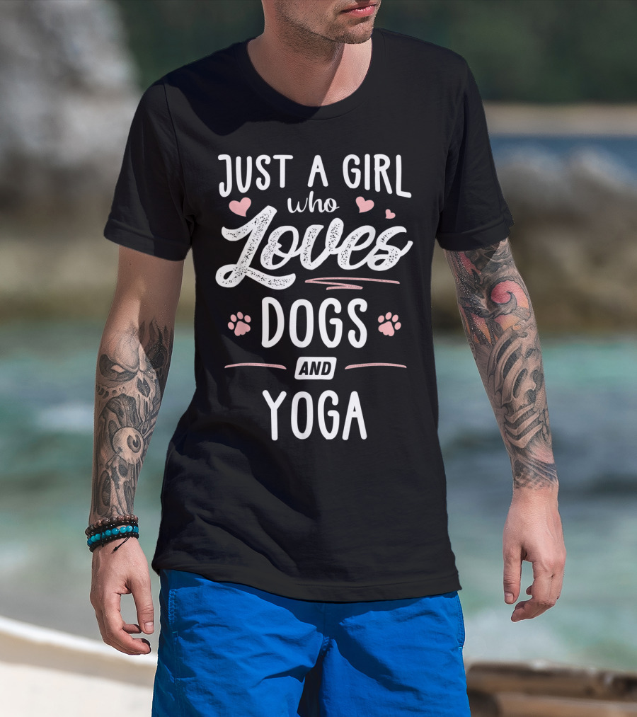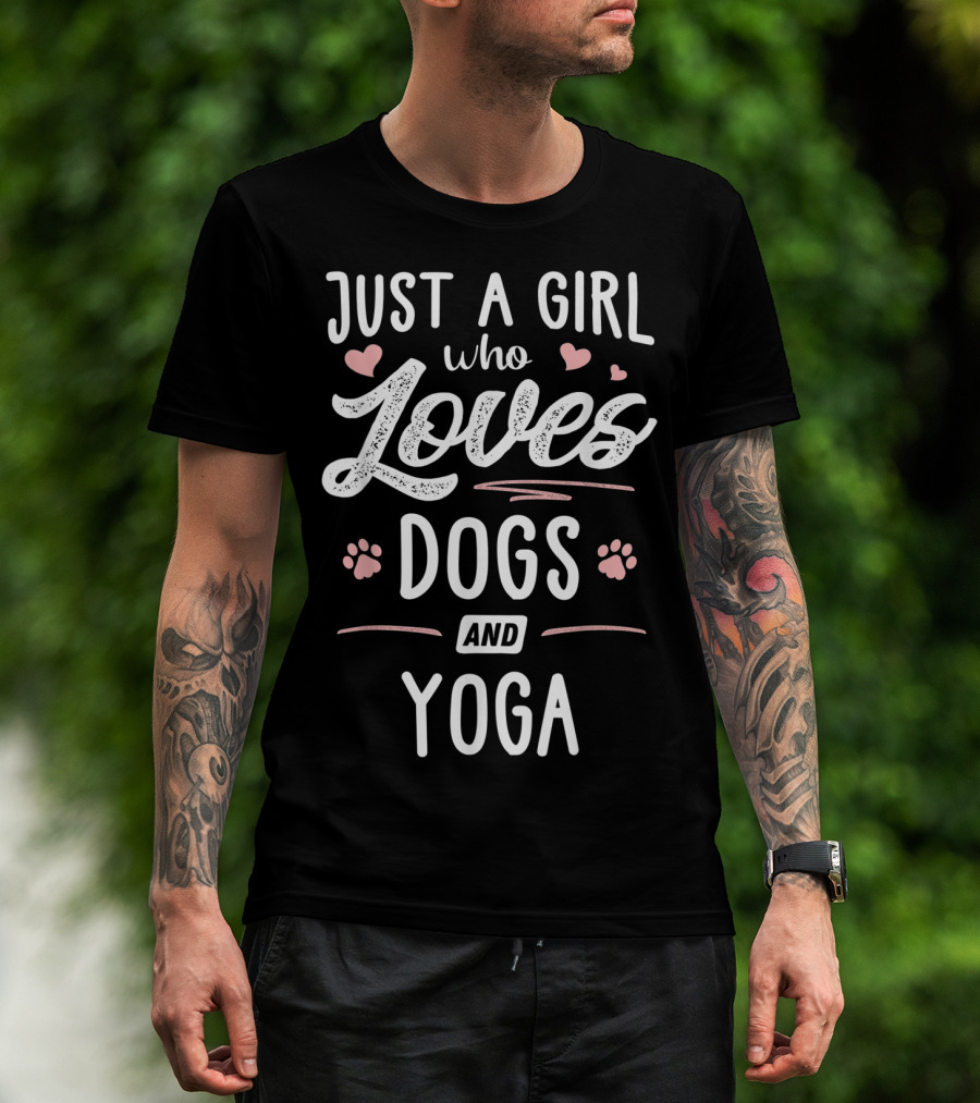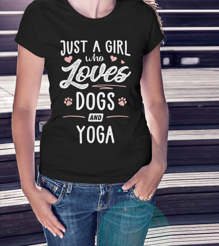 Just A Girl Who Loves Dogs And Yoga With Hearts And Paw Prints T-Shirt