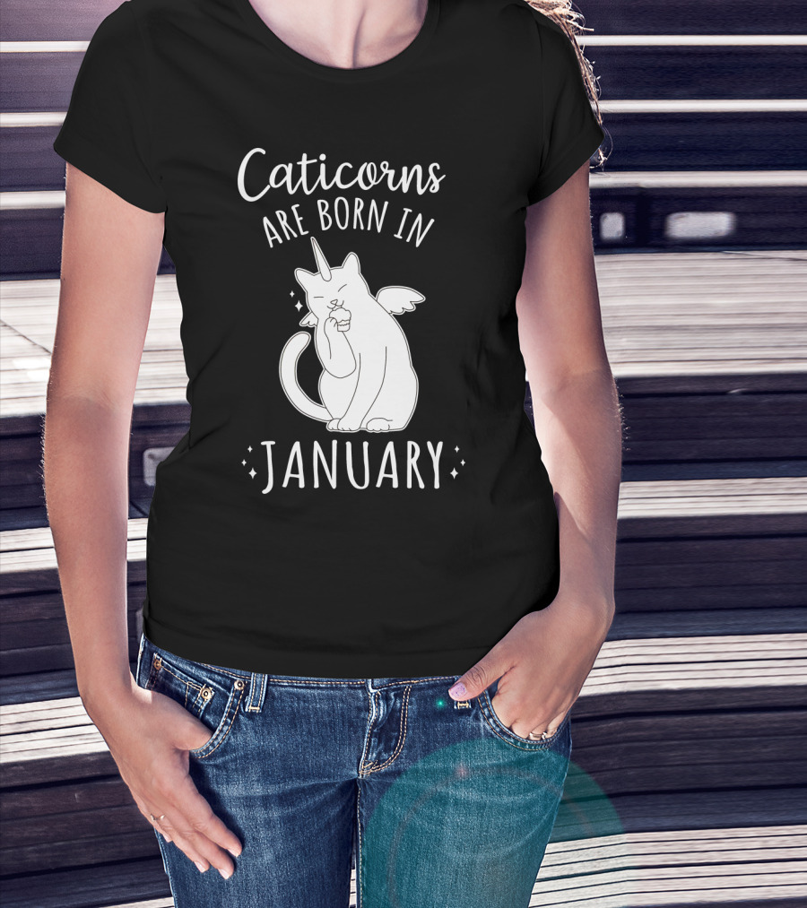 Caticorns Are Born In January Cat Unicorn Birthday January T-Shirt