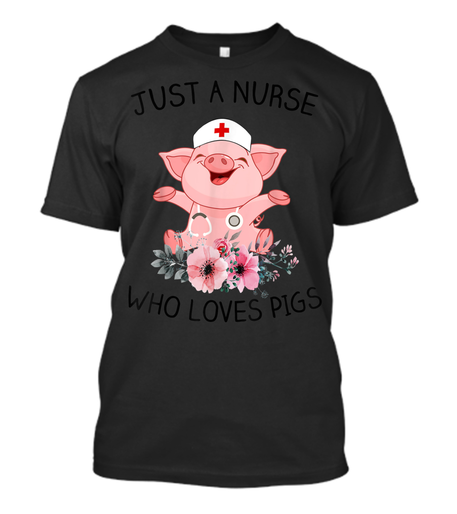 The Just A Nurse Who Loves Pigs with Floral Pig and Nurse Cap T-shirt is designed for everyday wear and a consistent fit. Fabric is pre-shrunk ring-spun cotton with durable stitching. See the size chart below for exact measurements.