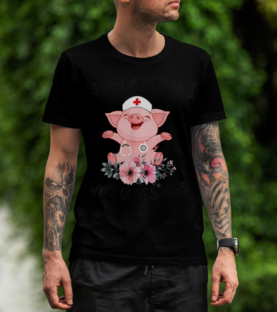 Just A Nurse Who Loves Pigs With Floral Pig And Nurse Cap T-Shirt