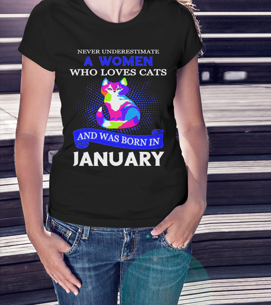 NEVER UNDERESTIMATE A WOMEN WHO LOVES CATS AND WAS BORN IN JANUARY T-Shirt