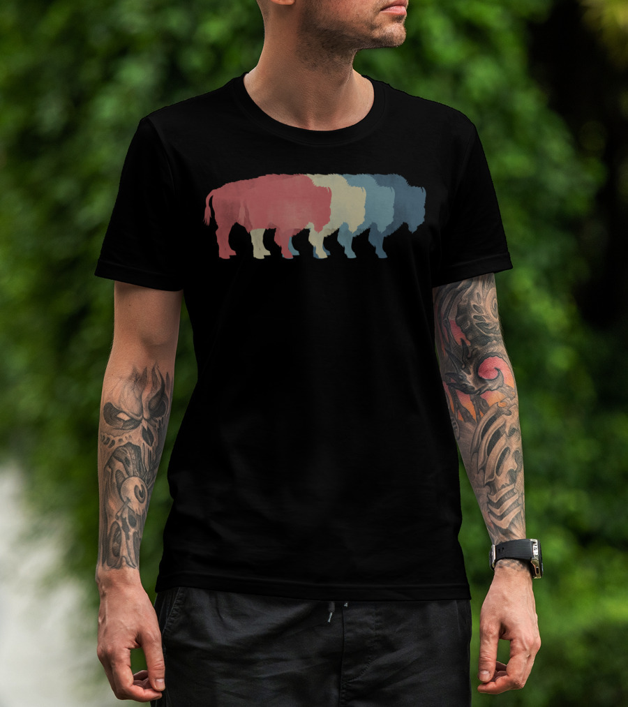 Save Buffalo Bison Colorful Silhouette Graphic 365 T-Shirt