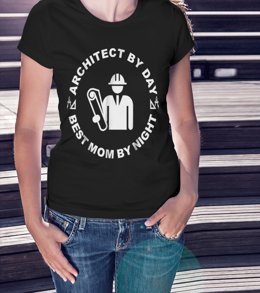 ARCHITECT BY DAY BEST MOM BY NIGHT Hard Hat Worker Holds Blueprint T-Shirt