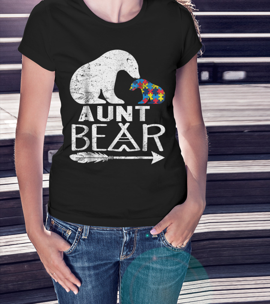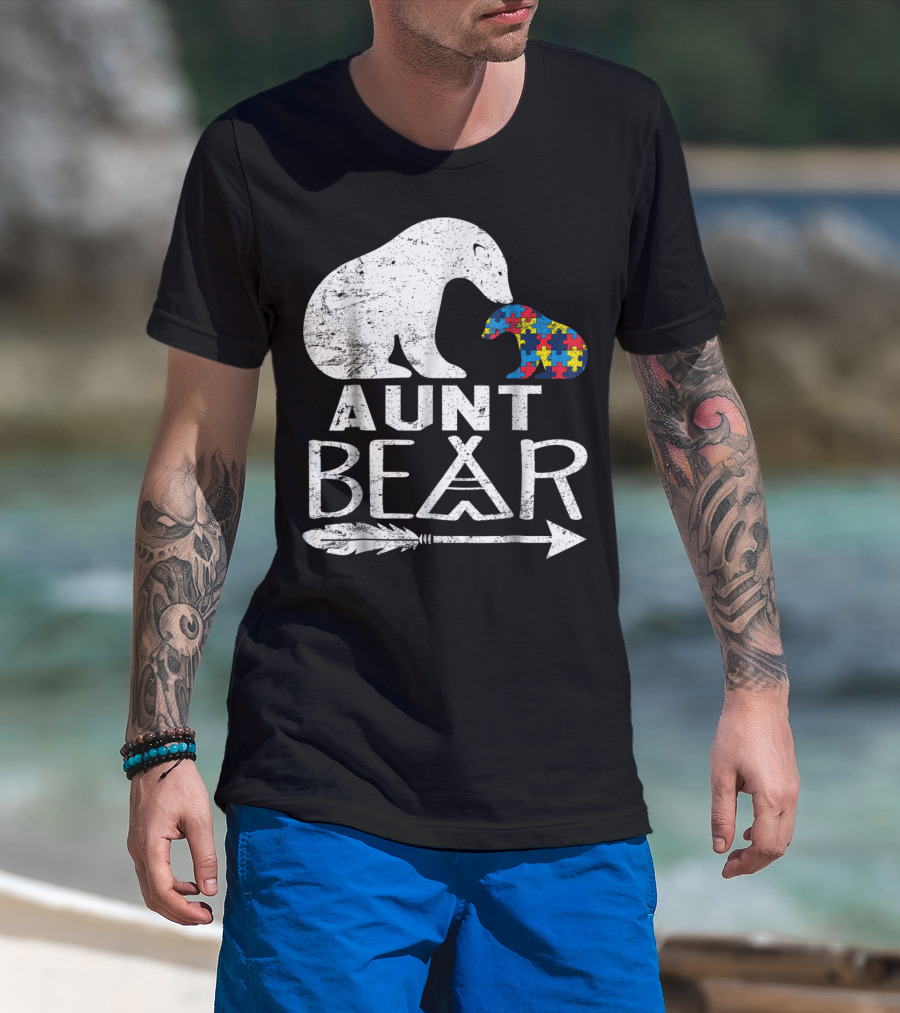 Aunt Bear Autism Awareness Puzzle Arrow Bear T-Shirt