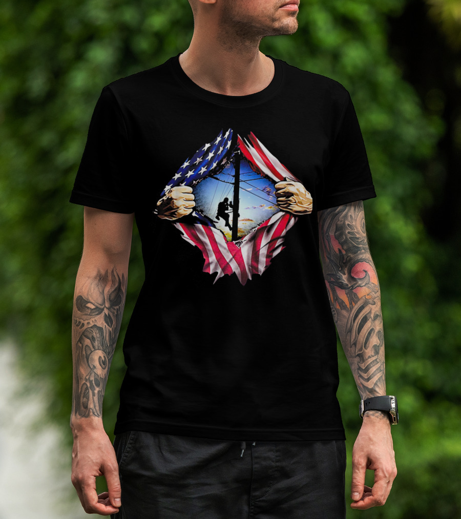 American Flag Lineman USA Patriotic Power Worker T-Shirt