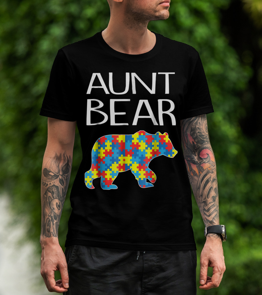 The Aunt Bear Autism Puzzle T-shirt is designed for everyday wear and a consistent fit. Fabric is pre-shrunk ring-spun cotton with durable stitching. See the size chart below for exact measurements.