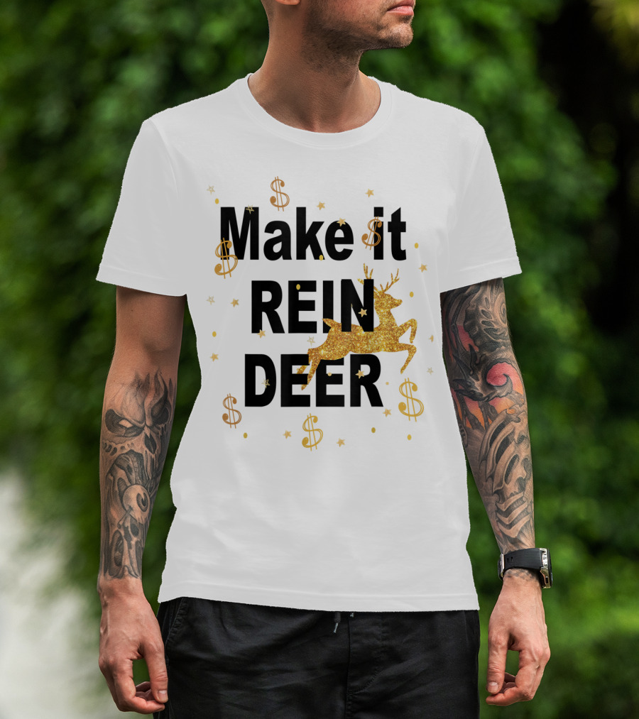 Make It Reindeer Dollar Signs And Glittery Reindeer With Stars T-Shirt