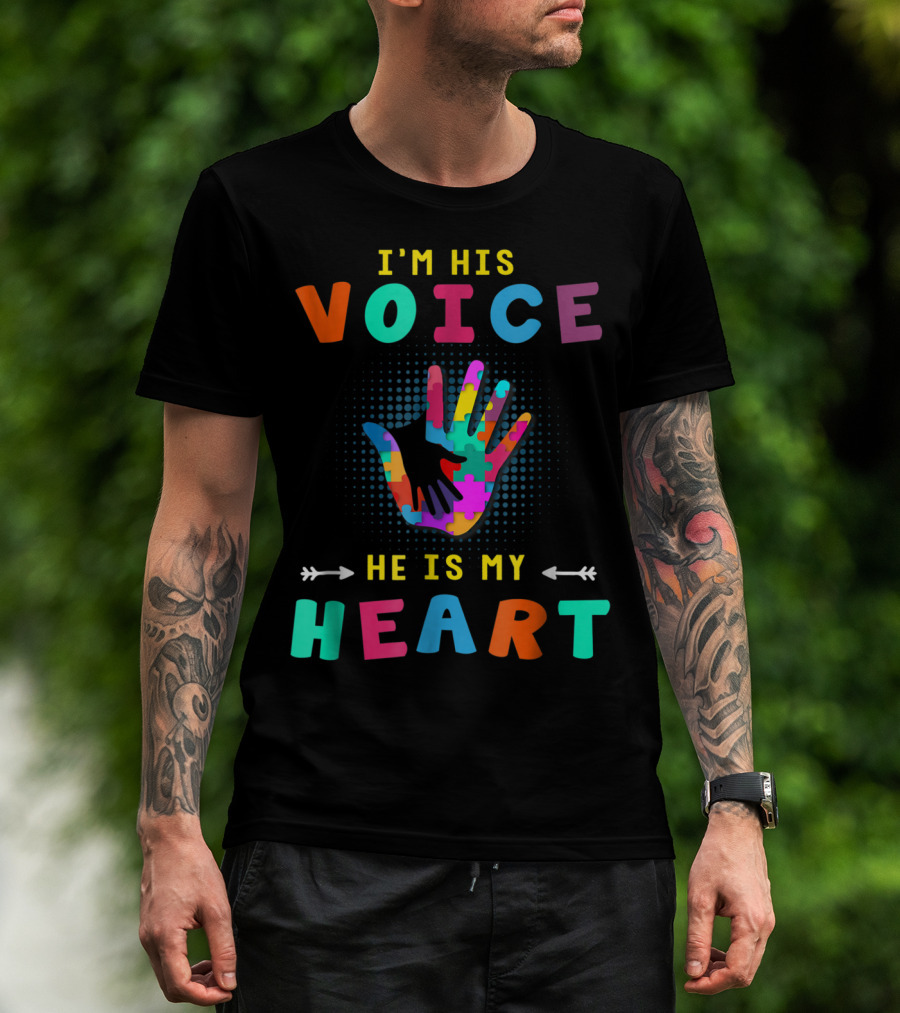 I'm His Voice He Is My Heart Autism Support Mom Son T-Shirt