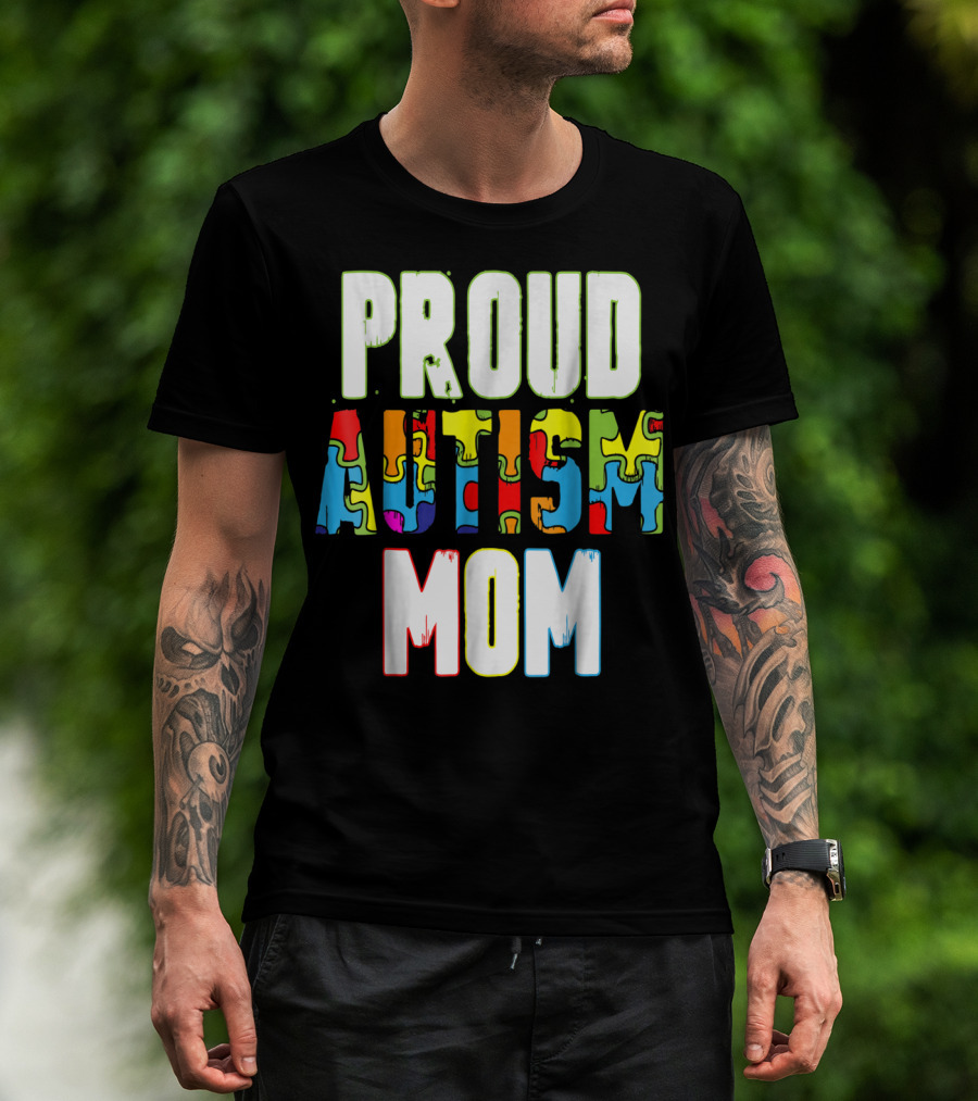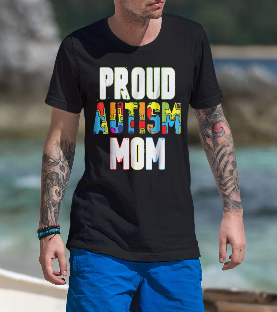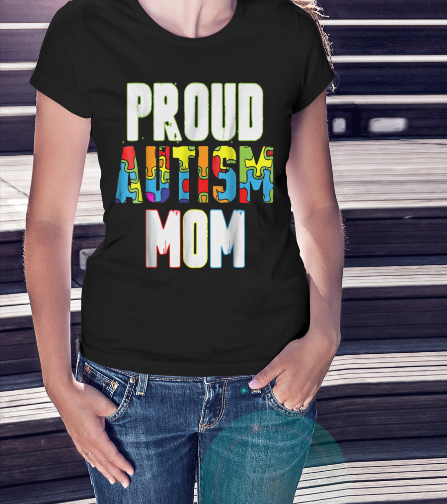 PROUD AUTISM MOM Autism Awareness Puzzle T-Shirt